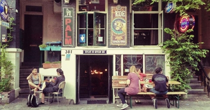 Met veertien personen werd genoten van een maaltijd en een drankje in eetcafe De Koe in Amsterdam.