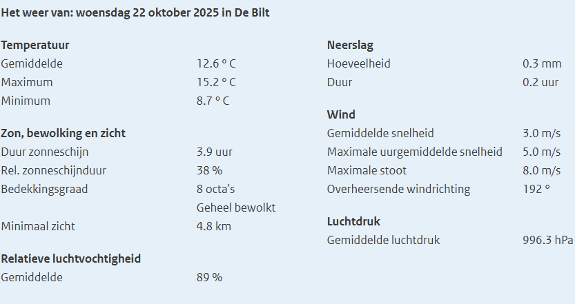 Woensdag; Wat eten we vandaag?; UN 80th anniversary; Tweede Kamer verkiezing; Meteorenzwerm Orioniden; Meteorenzwerm Leo Minoriden; Wereldstotterdag; CAPSLOCKDAY; Vleesconsumptie per hoofd van de bevolking in Nederland; Levenseinde Verkiezingsdebat; Amsterdam Dance Event; Joodse stemmen voor gerechtigheid voor Palestina.