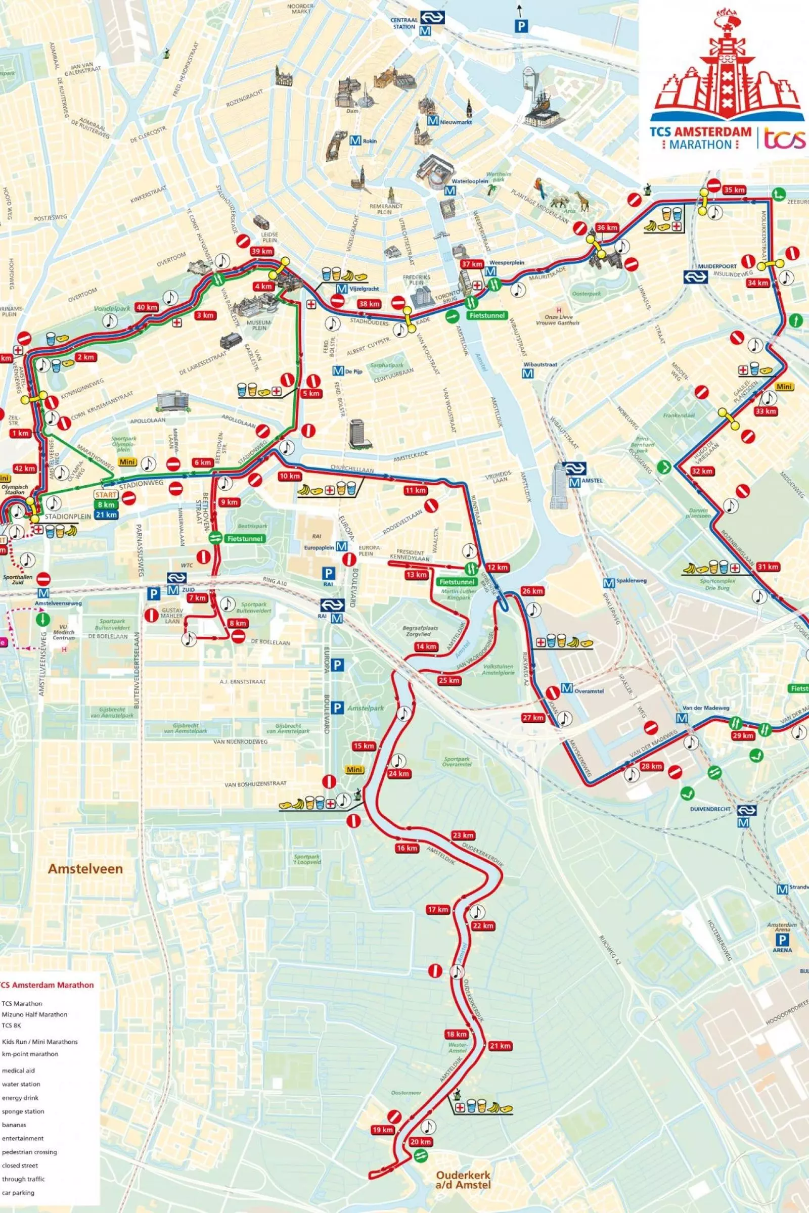 De hoofdafstand is de hele marathon (42,195 km). Hiernaast kent het evenement hardloopwedstrijden over de halve marathon, 8 km-loop (sinds 2010, voorheen 5 km, 7,5 km of 10 km) en diverse jeugdlopen (1 km tot 2,5 km). Het evenement heeft in 2020 van de World Athletics de Platinum Label Race gekregen, waardoor de TCS Amsterdam Marathon met deze hoogst haalbare status staat in een rijtje van 12 wereldmarathons. In 2023 hebben zich 20.000 deelnemers voor de hele marathon aangemeld en ook 20.000 deelnemers voor de halve marathon.