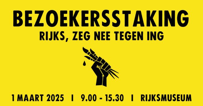 Op zaterdag 1 maart 2025 vanaf 09:00 demonstreren kunstliefhebbers op de stoep van het Rijksmuseum nadat zij duizenden door hen gereserveerde toegangskaarten hebben geannuleerd uit protest tegen de sponsorrelatie met ING. De bank is met jaarlijks miljarden euro’s financiering in de fossiele industrie medeverantwoordelijk voor klimaatrampen en mensenrechtenschendingen. Uit onderzoek van SOMO, in opdracht van Milieudefensie, blijkt dat die financieringen tien keer hoger uitvallen dan ING beweert.
