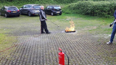 Ook werd er gesproken over Wetgeving (Arbeidsomstandighedenwet) en Risico-inventarisatie en -evaluatie (RI&E). Alle oefeningen en de theoretische testen werden met goed gevolg afgerond.